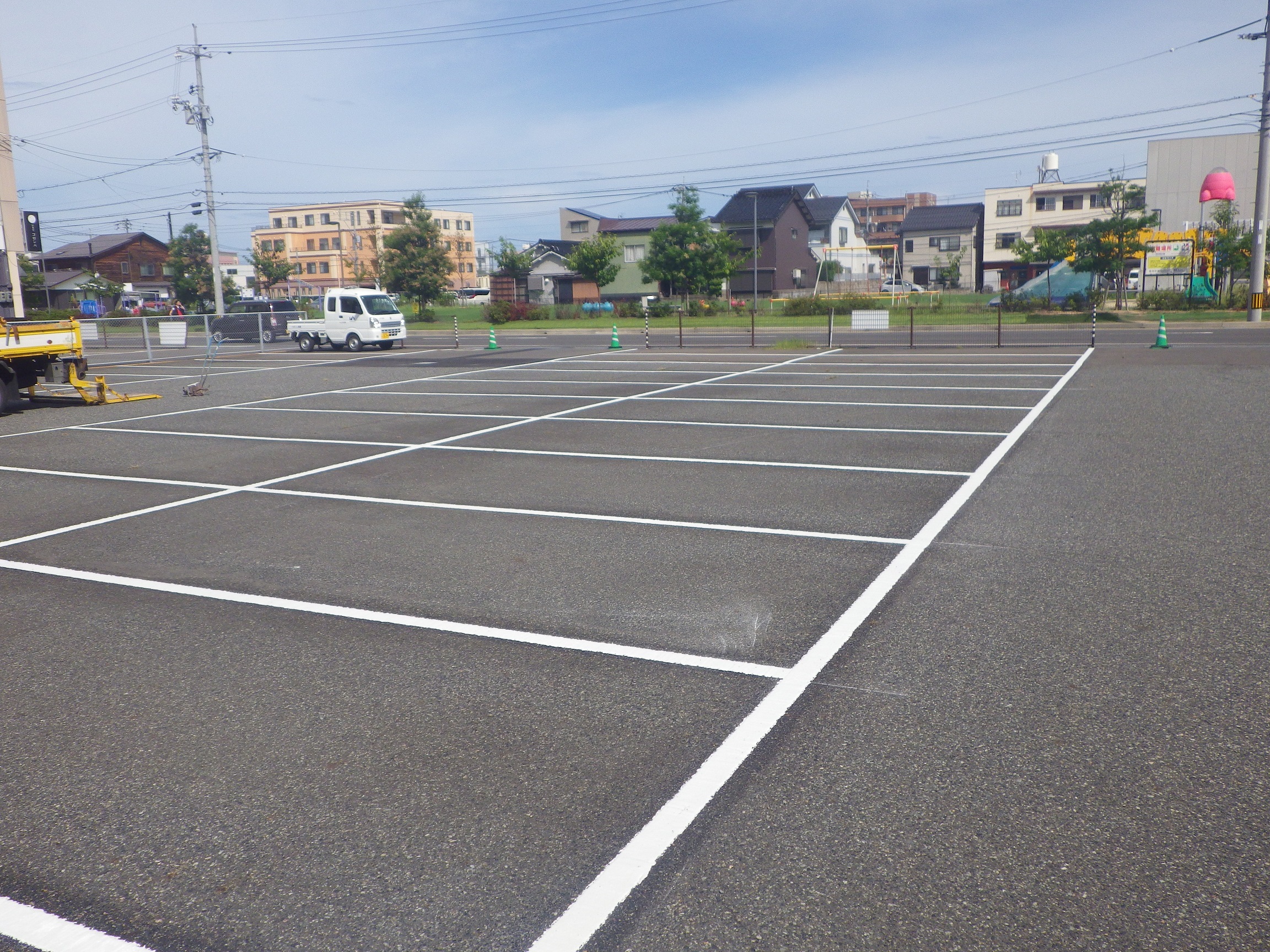 こんにちは、今回のブログ担当総務部のMです。 まだまだ暑い毎日ですが、雨が降るたび少しずつ秋の気配が近づいてきていると感じるこの頃です。 先週末ですが、弊社駐車場区画線の引き直し作業を行いました。 大部分の区画線が見えづらくなってきたので、今回新しい区画線を引き直すことになりました。 [caption id="attachment_4334" align="alignnone" width="600"] 着手前 社屋5階より[/caption] [caption id="attachment_4335" align="alignnone" width="600"] 平地より[/caption] 施工は東洋交通施設株式会社様にて行い、私は車の移動作業を手伝いました。 舗装面を清掃し、飛散したゴミ等を除去します。 油脂、付着物等がある場合にはケレン棒等で除去します。 表面が濡れている場合にはバーナーで十分に乾燥させます。 [caption id="attachment_4338" align="alignnone" width="600"] 作図工 正確な寸法で作図、墨だしします。[/caption] [caption id="attachment_4340" align="alignnone" width="600"] プライマー(接着剤)散布[/caption] 自走式センターライン施工機にて区画線設置 適切な温度管理(180℃~200℃)で、厚さ1.5mm以上で塗布し、ガラスビーズを塗料が乾燥する前に散布します。 [caption id="attachment_4341" align="alignnone" width="600"] オレンジ色ゼブラ[/caption] [caption id="attachment_4342" align="alignnone" width="600"] 区画線材料の充填[/caption] 完成(車を移動させてから気づきましたが、5階からの写真を撮り忘れました。) 完成後は全体が引き締まった感じになりました。 余談ですがこっそりと車寄せ上の照明も水銀灯からLED照明に交換しています。 [caption id="attachment_4332" align="alignnone" width="550"] 水銀灯[/caption] [caption id="attachment_4333" align="alignnone" width="550"] LED照明[/caption]