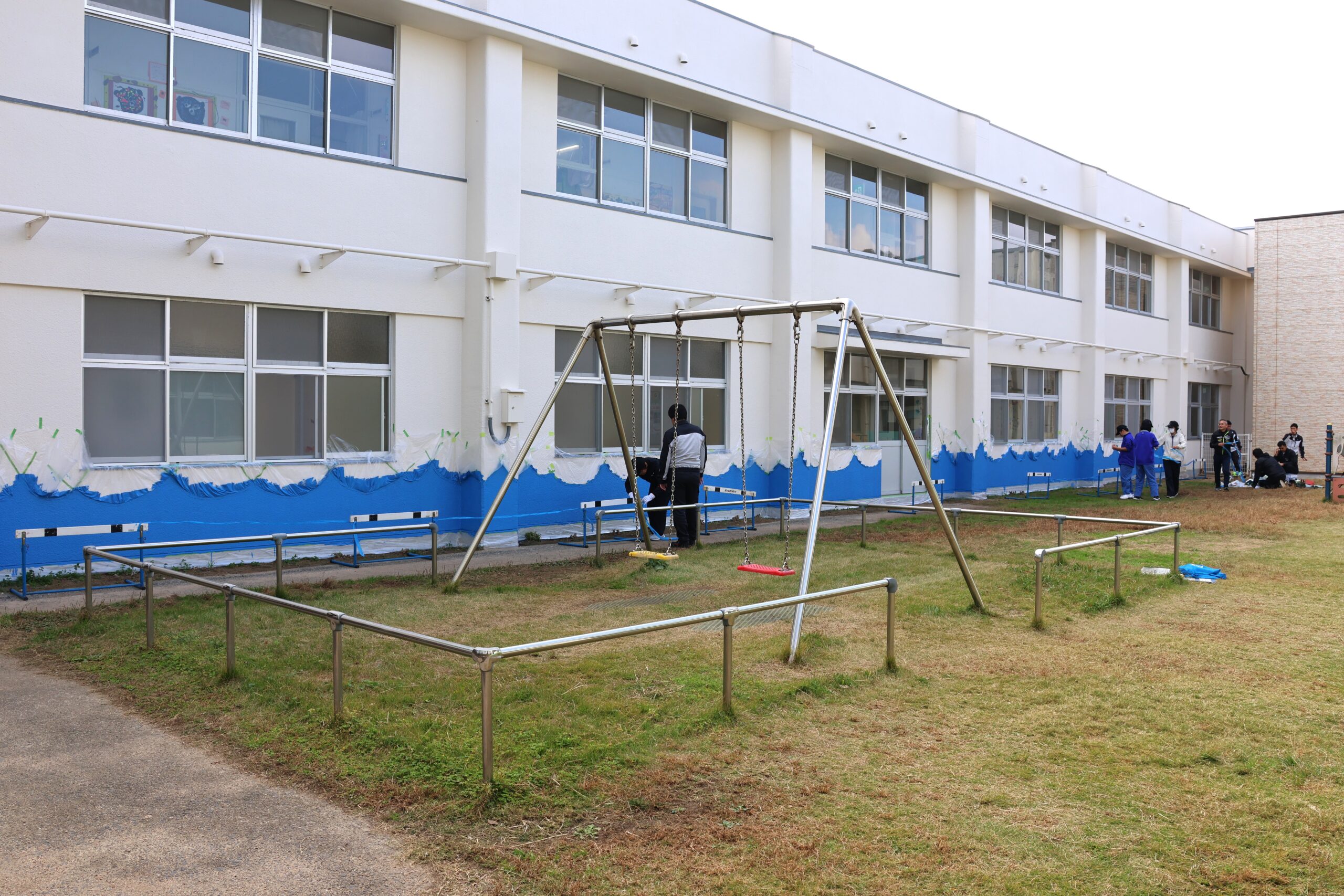 11月14日と11月18日の2日間に分けて大和建設・山陰東陽化成プレゼンツ「白兎養護学校壁面アートプロジェクト」を行いました。 先日、白兎養護学校の外壁塗装改修工事が完了しましたが、そこに記念となる絵を児童生徒のみなさんに書いてもらおう!とこのプロジェクトを始動したそうです。 アートテーマは「みんなの海」ということで、白兎養護学校の児童生徒のみなさんにキレイになった小学校部の中庭の壁へ絵をかいてもらいました。 今回は第1回目の高等部総合サービス班の生徒さんによる海と波の絵の作成の様子をご紹介していきます。 [caption id="attachment_4484" align="alignleft" width="2560"] この日の予定表[/caption] 高等部総合サービス班の2人で海と波の塗装をしてくれました。 初めて使う道具だったりなれない作業だったりで最初は慎重に進めていましたが、2人とも飲み込みが早くて予定よりも速いスピードでサクサクときれいな青い海が現れていきました。 [caption id="attachment_4482" align="alignleft" width="2560"] 塗り方を真剣に聞く生徒たち[/caption] 途中の休憩時間では遊びに出てきた小学生たちも興味津々で見ていたり、先生方もペイントの体験をしていました。 完成!! 最後に完成した海をバックに記念撮影! 2日目は翌週11月21日に行われました。 次回のブログもお楽しみに!!
