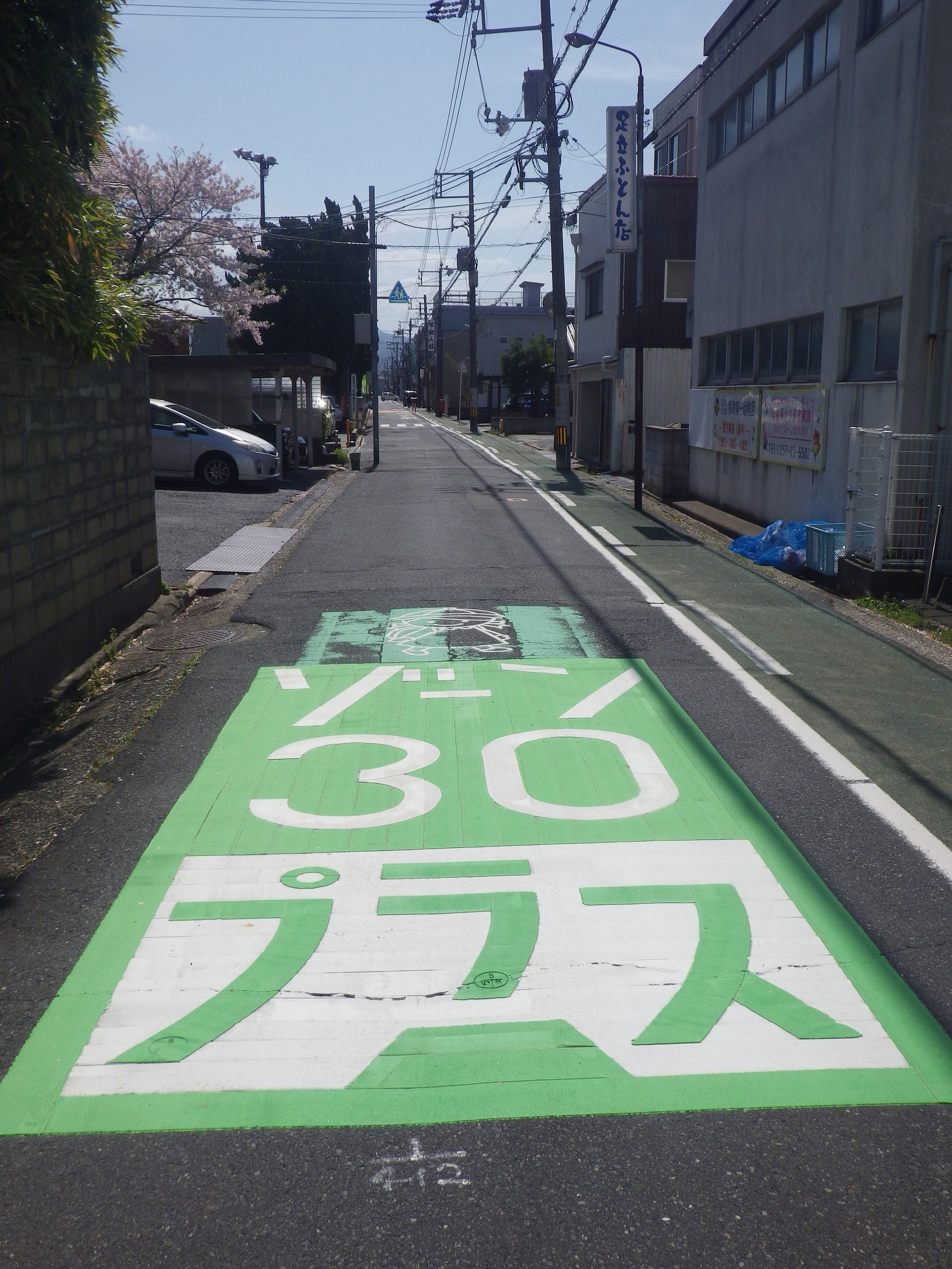 標識に記載の通り「ゾーン30プラス」と呼ばれ、最高速度30km/hの区域規制「ゾーン30」とハンプ等物理的デバイスを適切に組み合わせ、交通安全の向上を図る生活道路対策で道路管理者と警察が連携しながら整備を進めています。