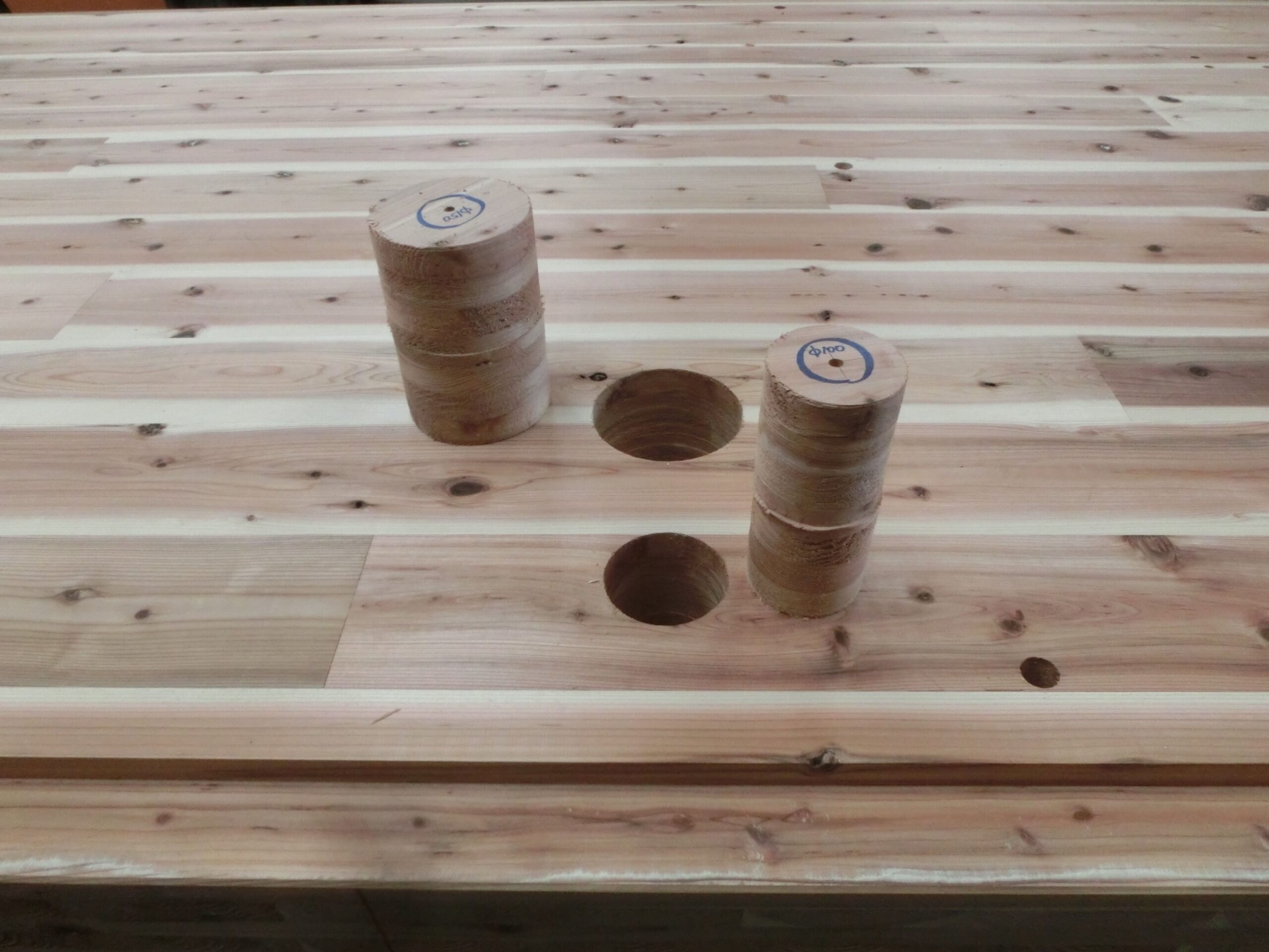 製品検査の記念に、給水・排水貫通穴加工で発生した木片を本社に持ち帰りました。