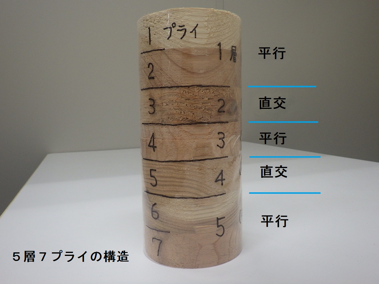 使用するCLTの種類はスギの「5層7プライ」と呼ばれるものです。