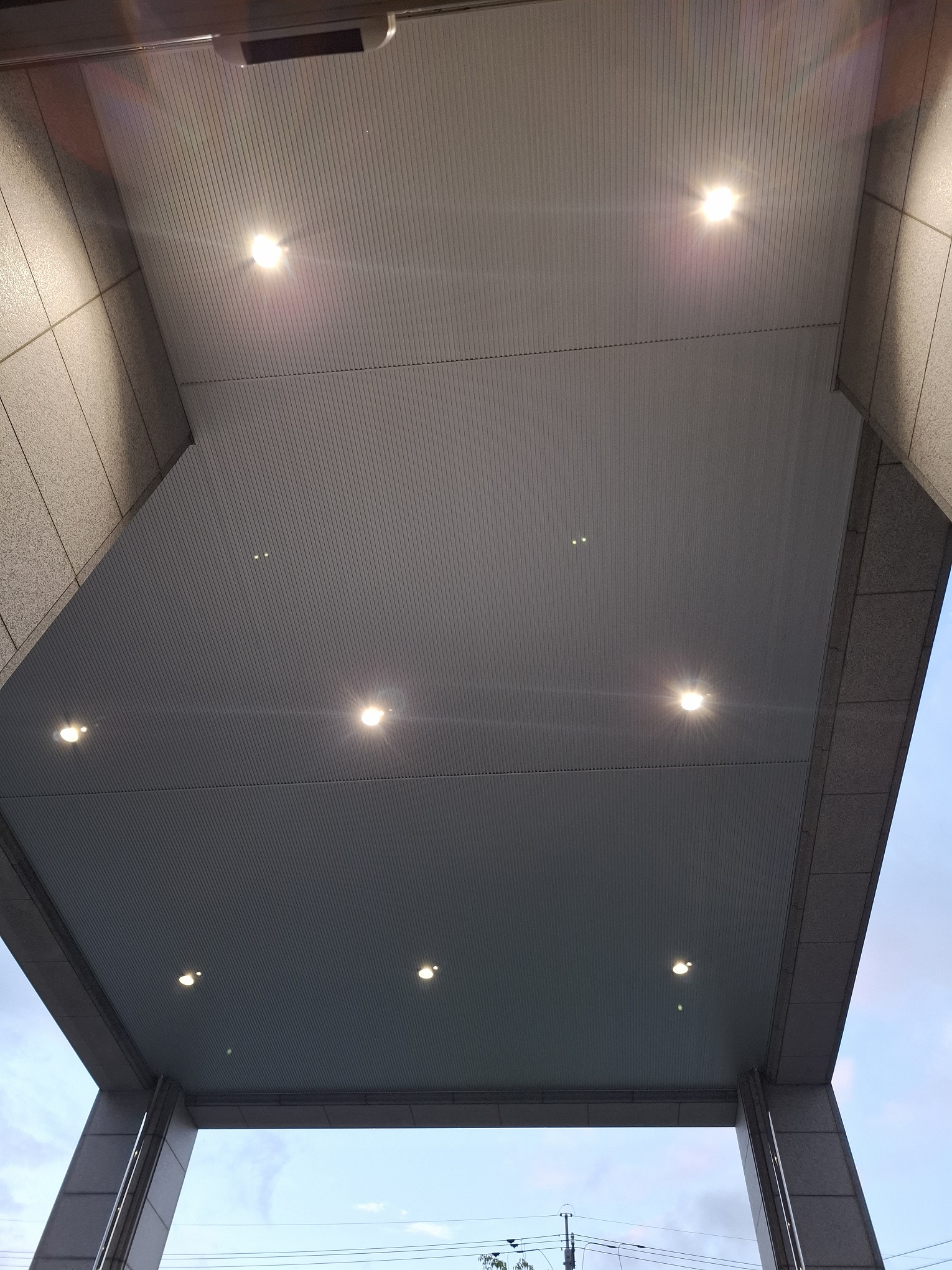 余談ですがこっそりと車寄せ上の照明も水銀灯からLED照明に交換しています。