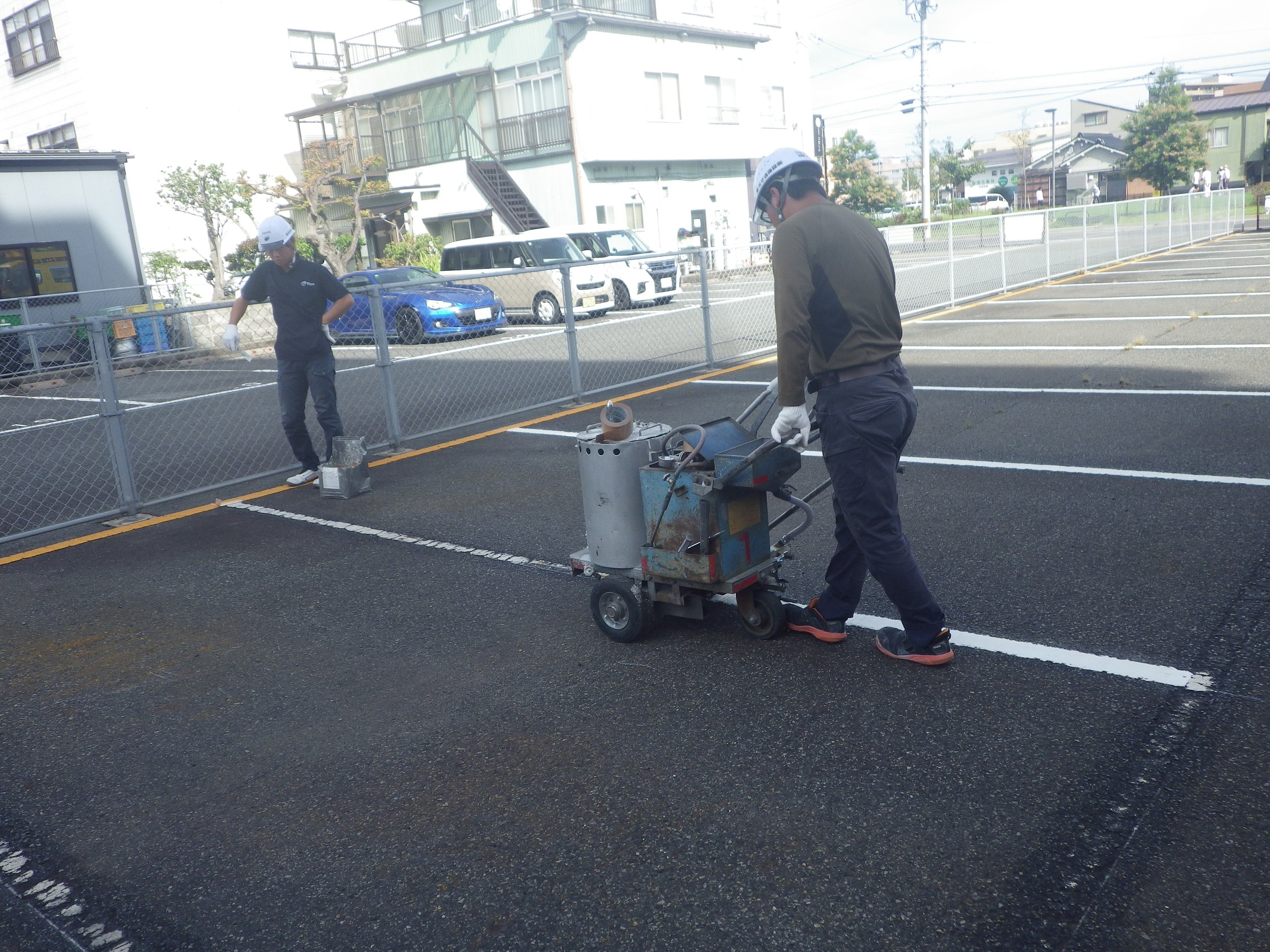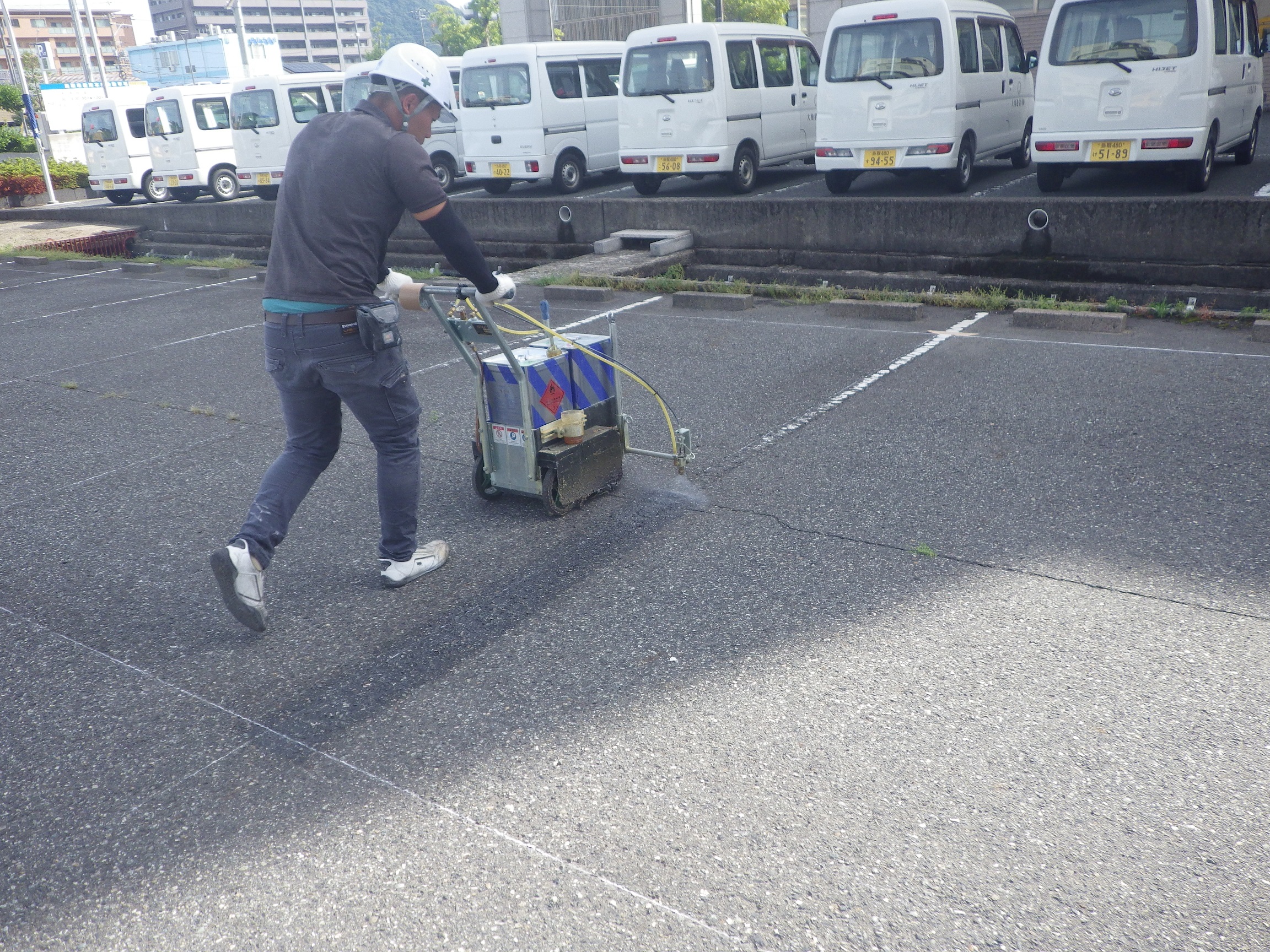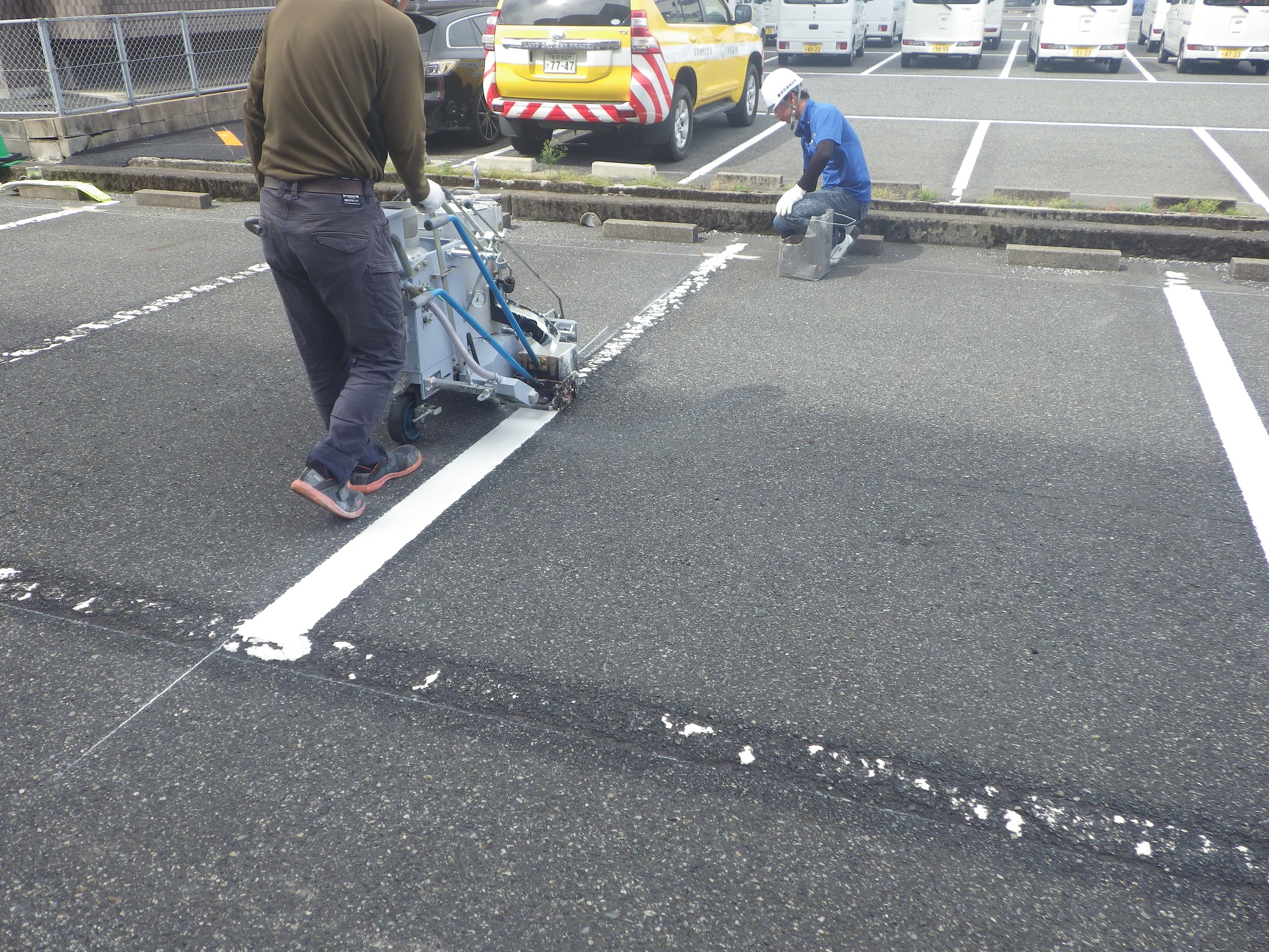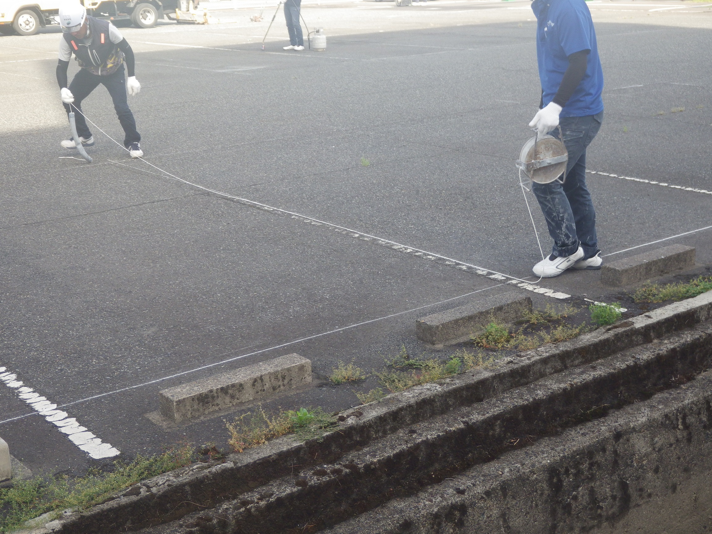大部分の区画線が見えづらくなってきたので、今回新しい区画線を引き直すことになりました。