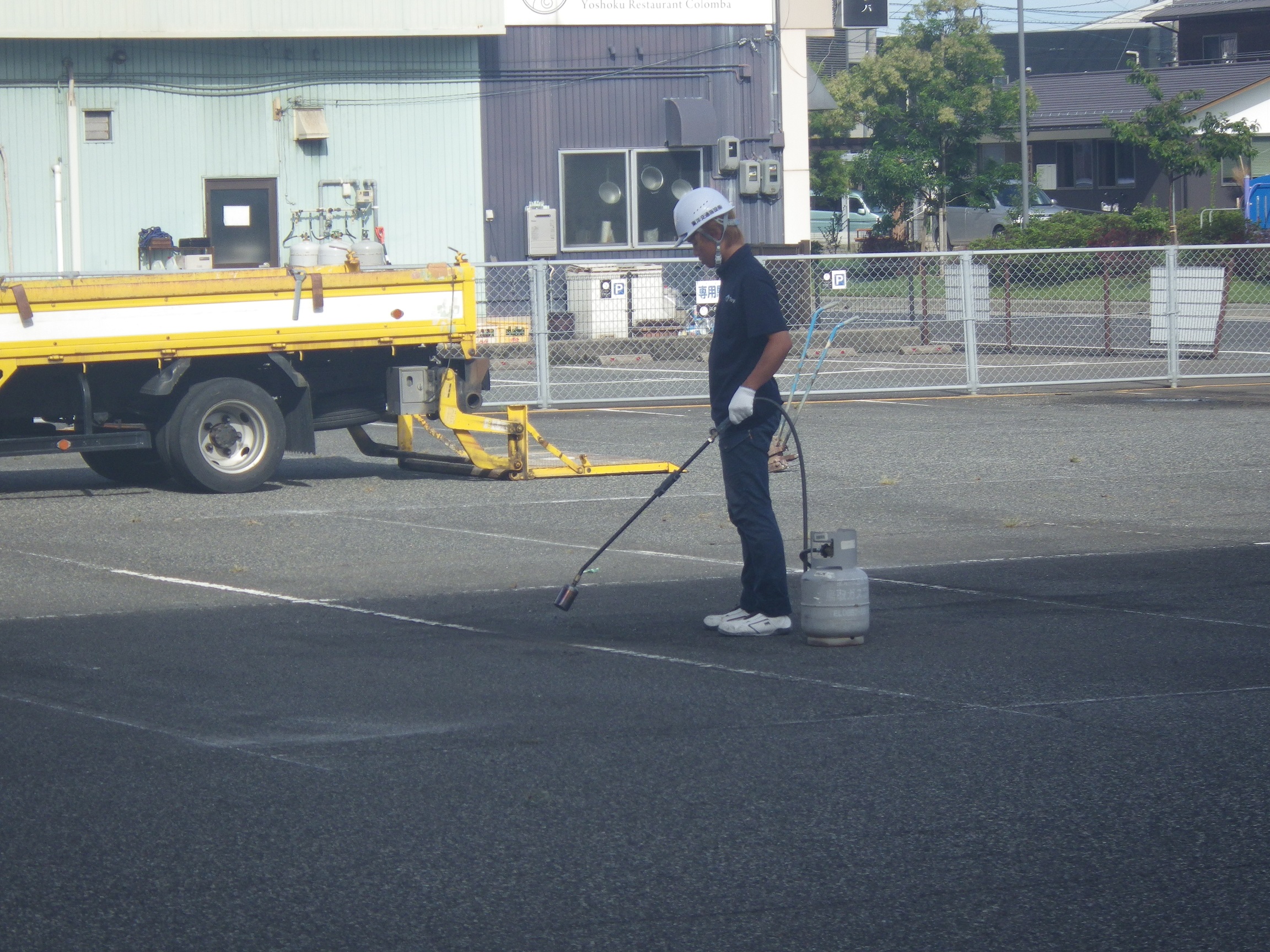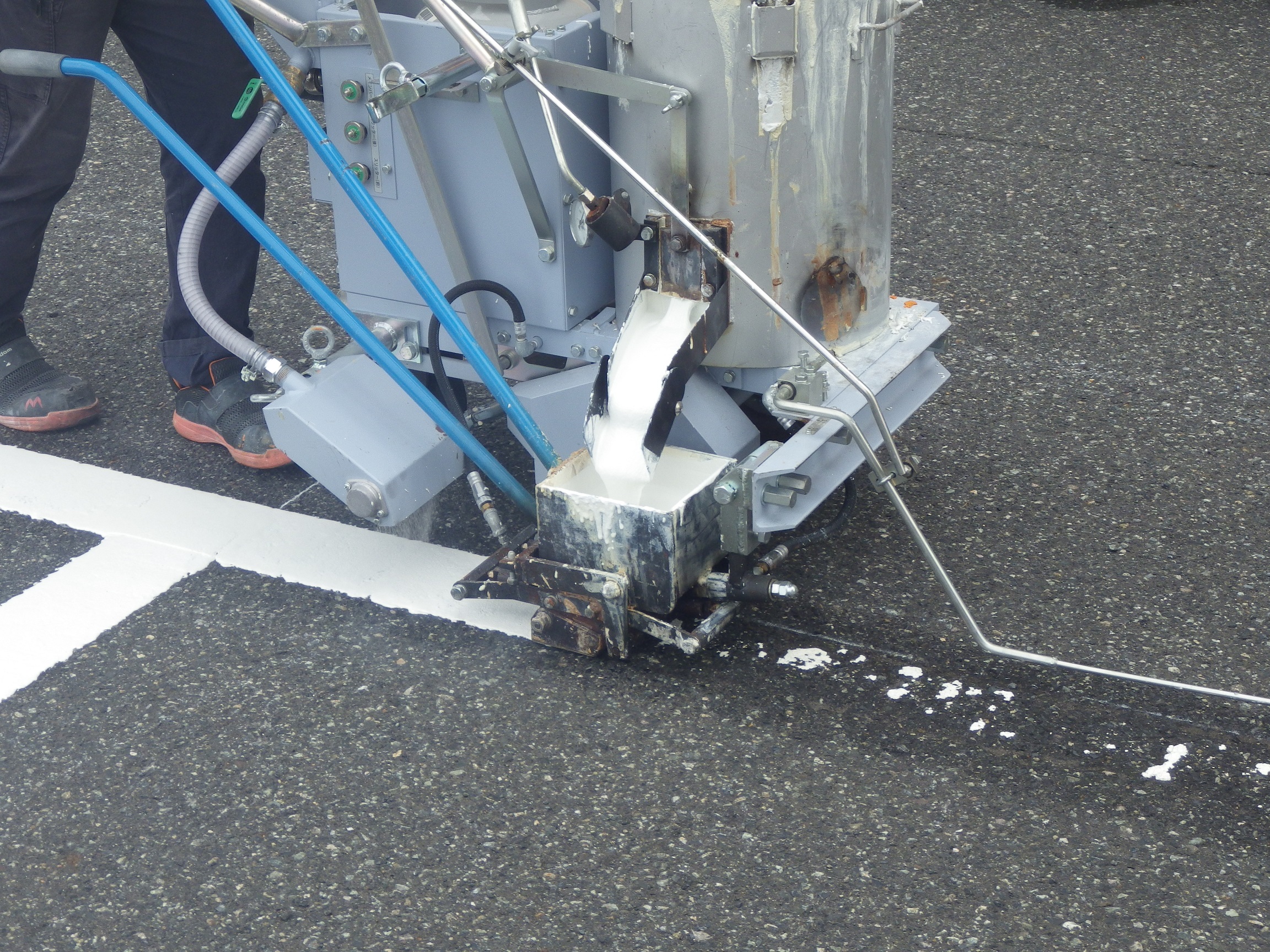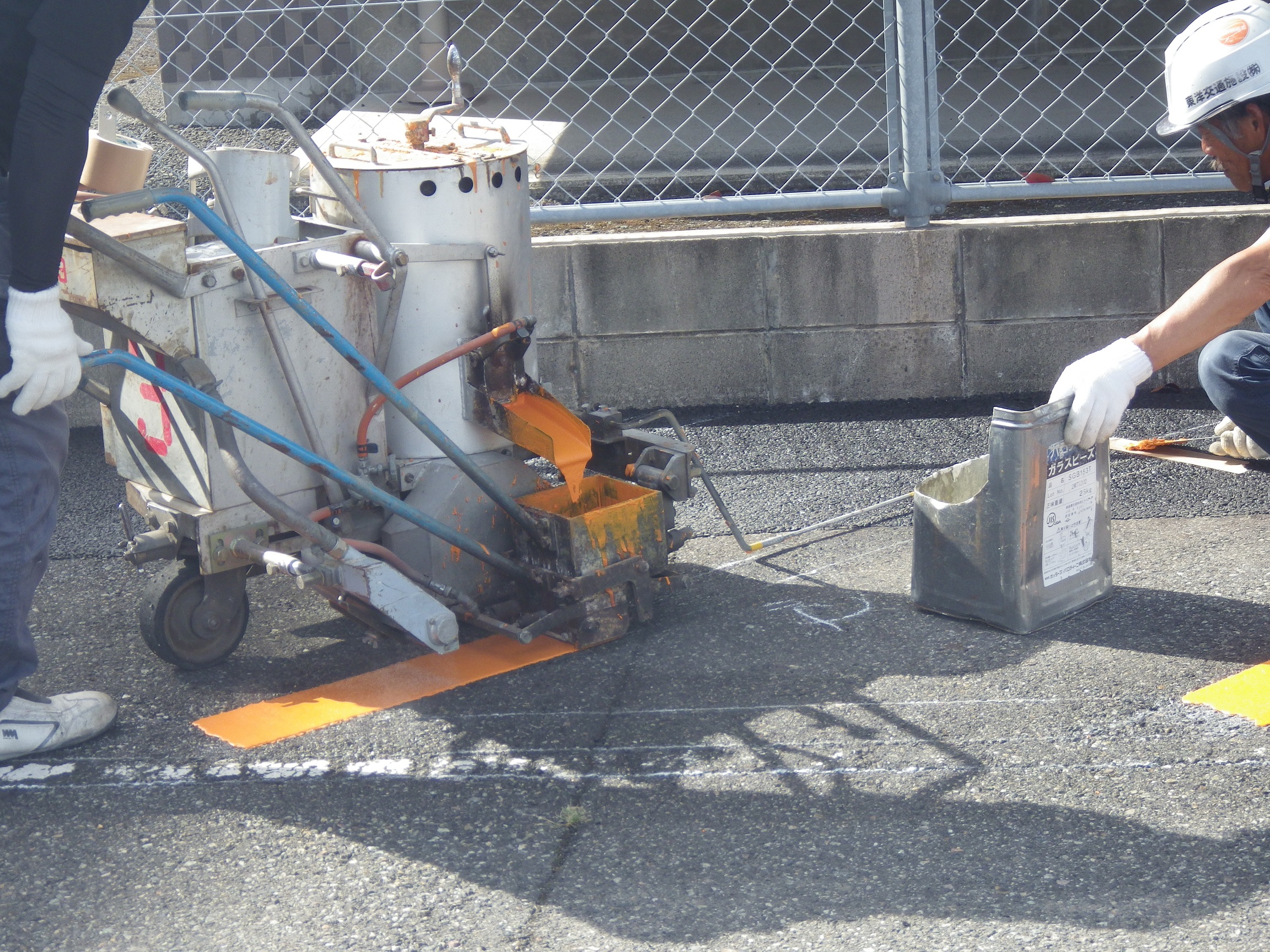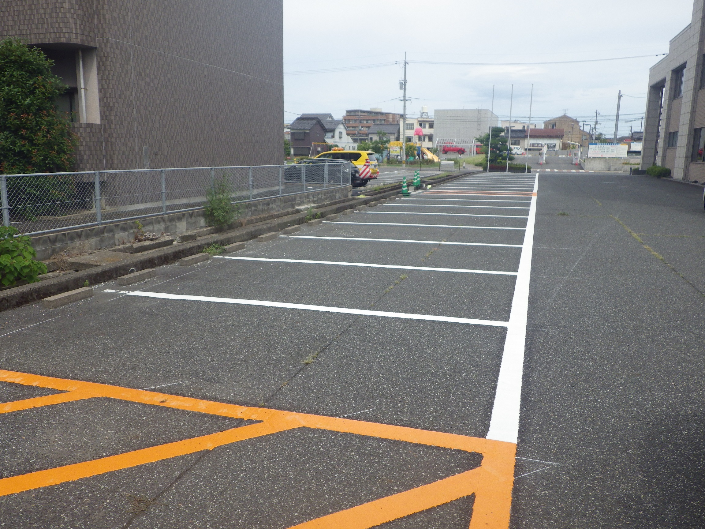 大部分の区画線が見えづらくなってきたので、今回新しい区画線を引き直すことになりました。