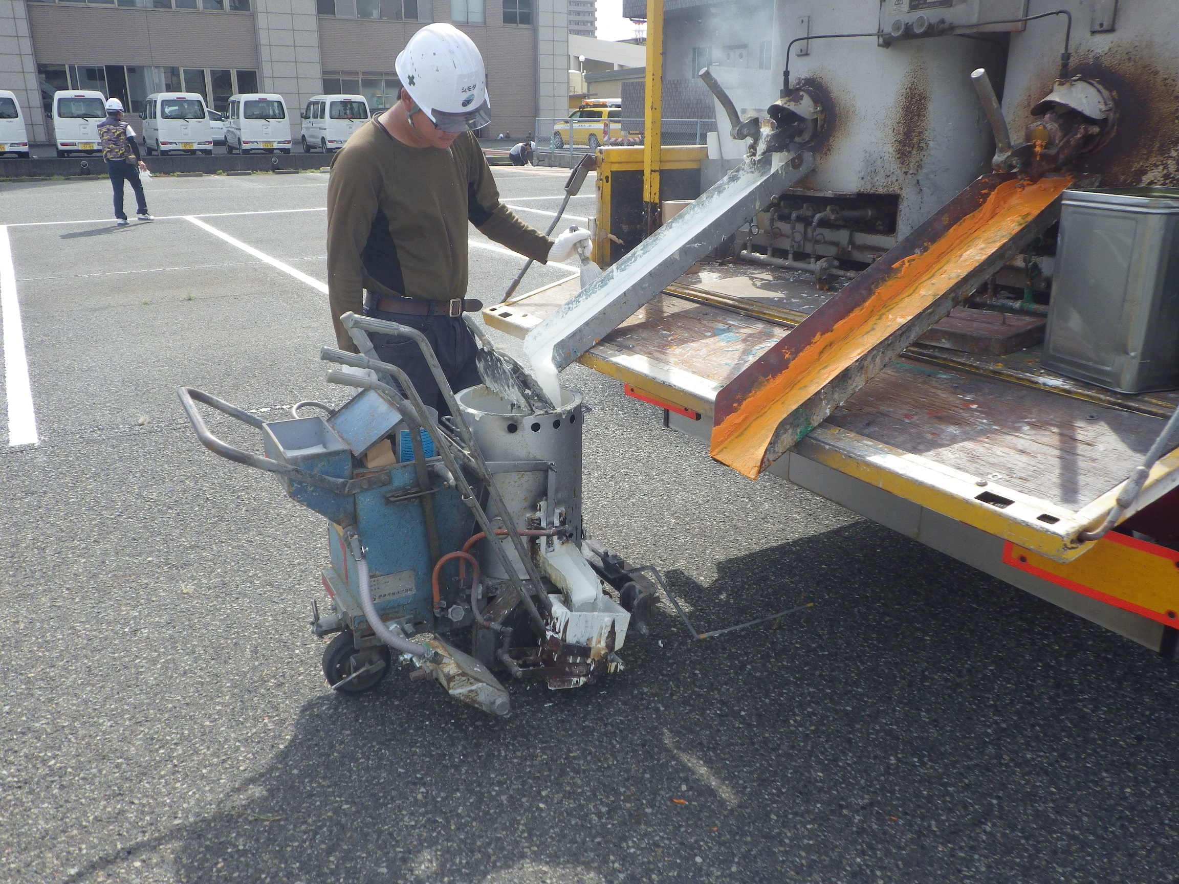 施工は東洋交通施設株式会社様にて行い、私は車の移動作業を手伝いました。