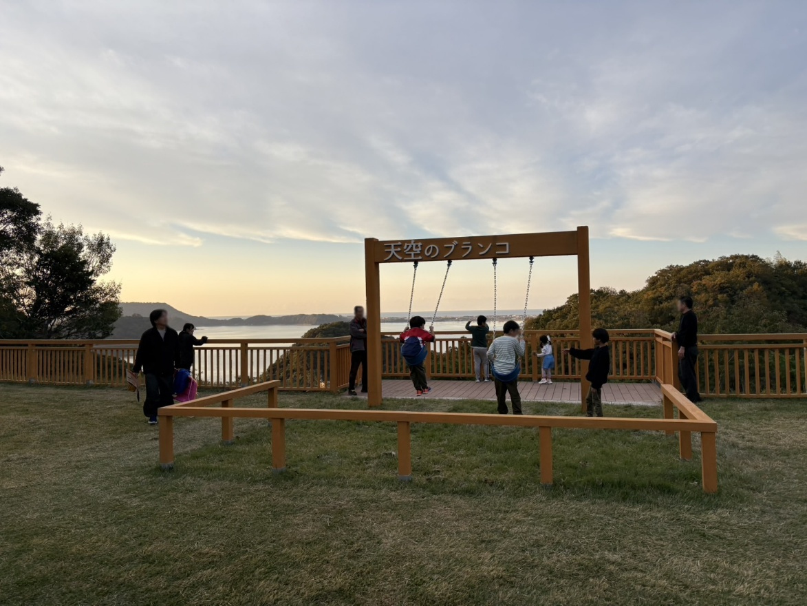 森の広場には「天然芝生のすべり台」、空の広場には「天空のブランコ」、光の広場には「展望台」があり、子供連れの家族でにぎわっていました。