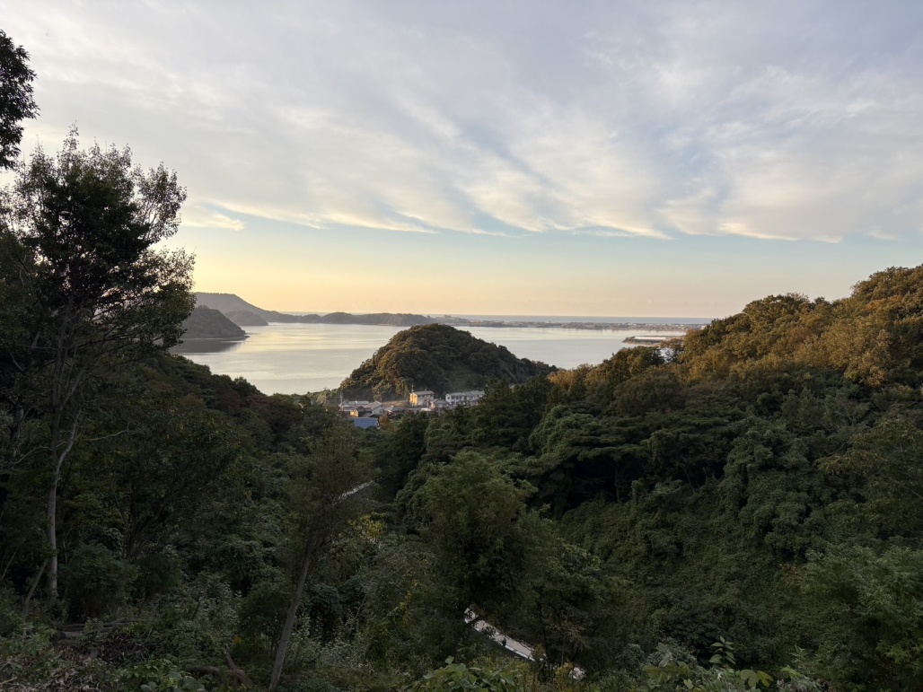 ブランコ前から現場の方を眺めたら、青島や湖山池がきれいに見えました。