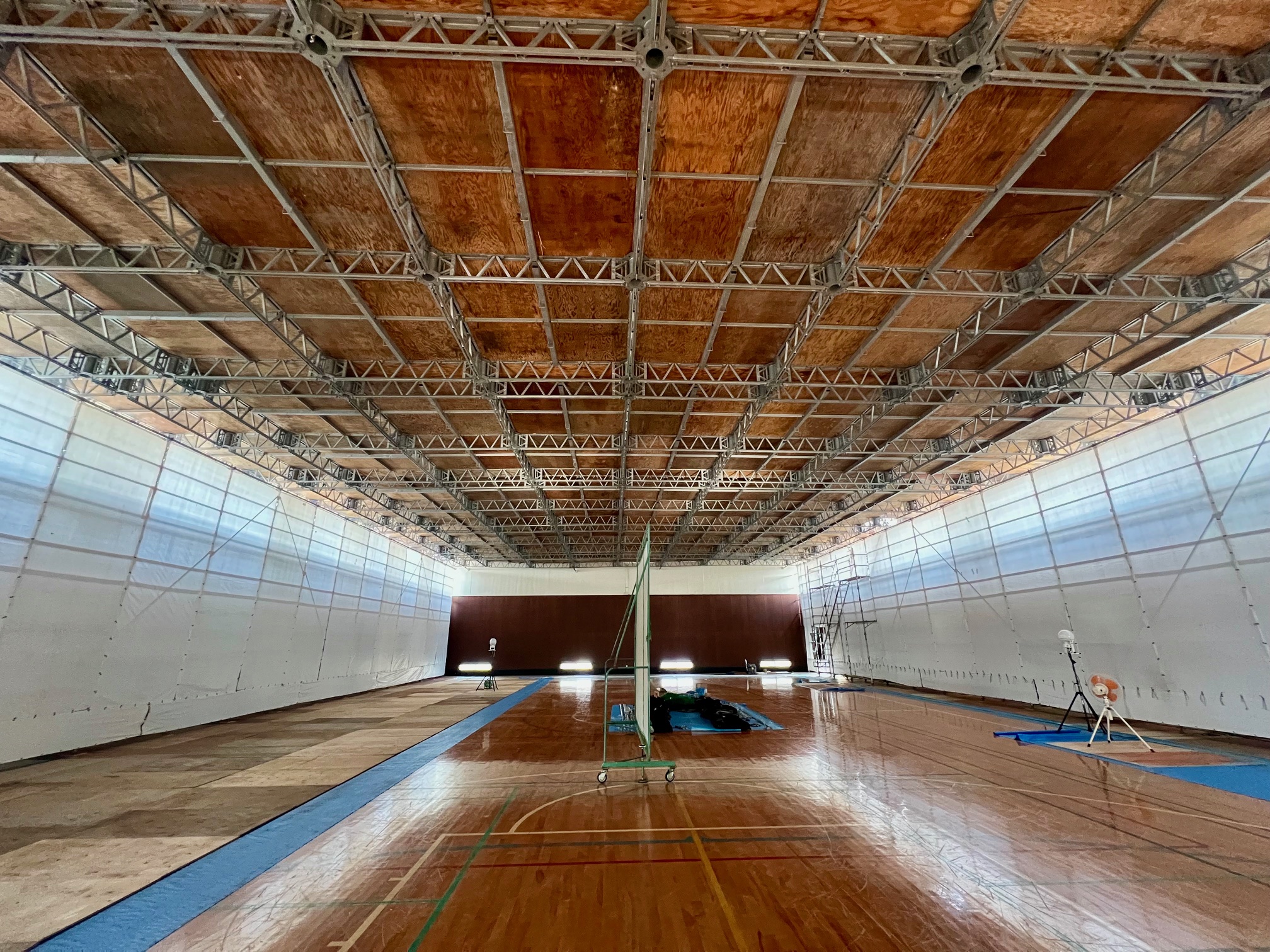 本工事は既存の体育センターの耐震補強ならびに不具合を改修し施設を健全な状態で長く使用できるようにするための工事でした。