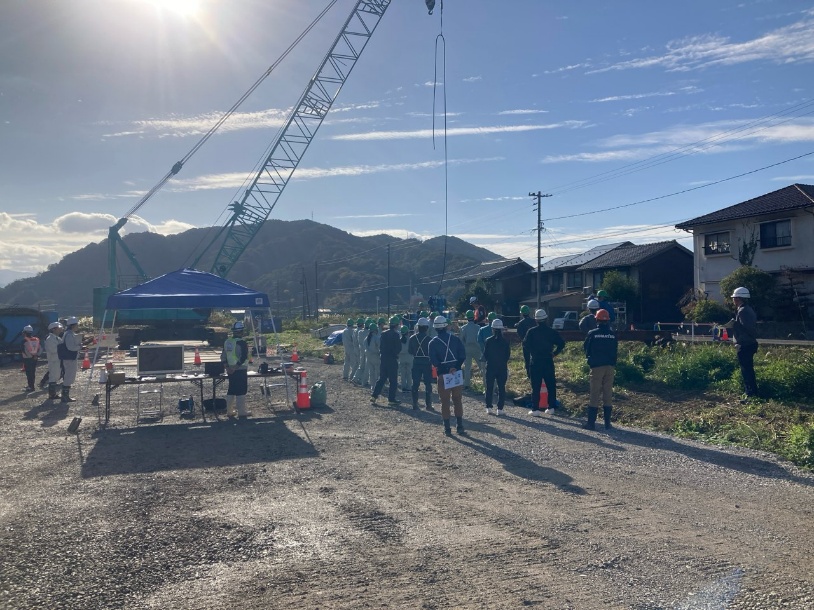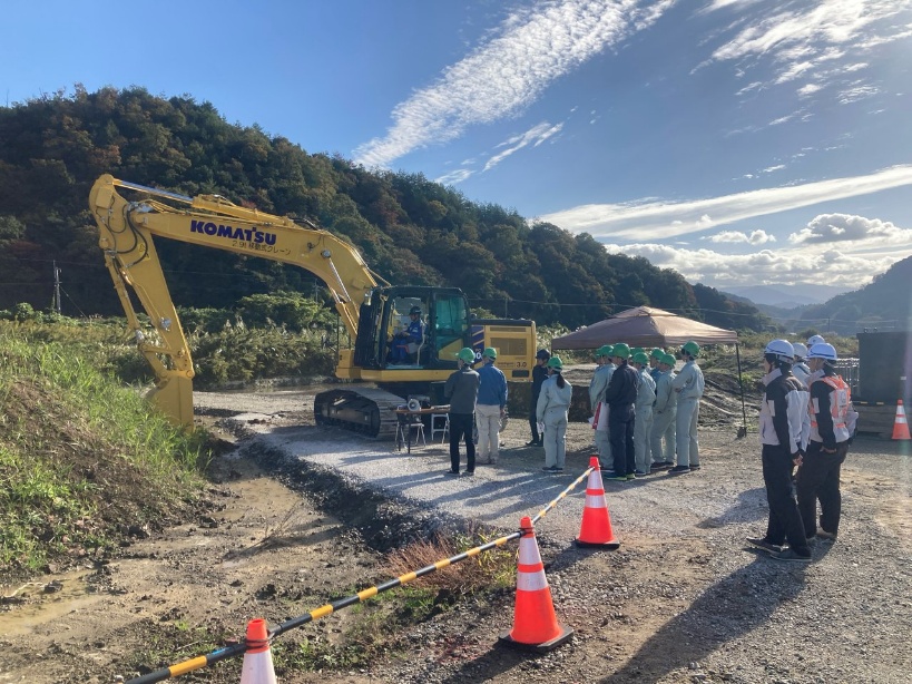 まずは⿃⼯⽣を招いて現場⾒学が⾏われ、当社が施⼯する「塩⾒川広域河川改修⼯事(13⼯区)(国補正)」で開催されました!