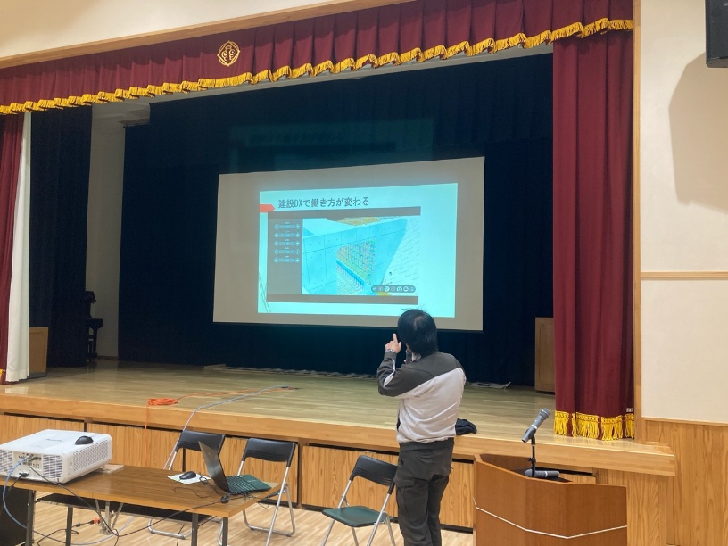 続いては屋内に移動し、東部地区の⼯事紹介や、在校⽣と建設業に従事する⿃⼯卒業⽣との意⾒交換会が⾏われました!