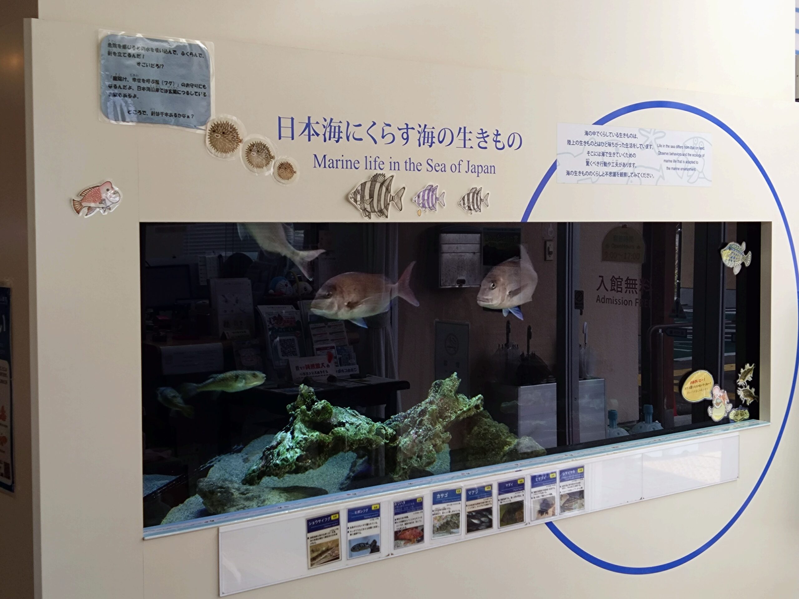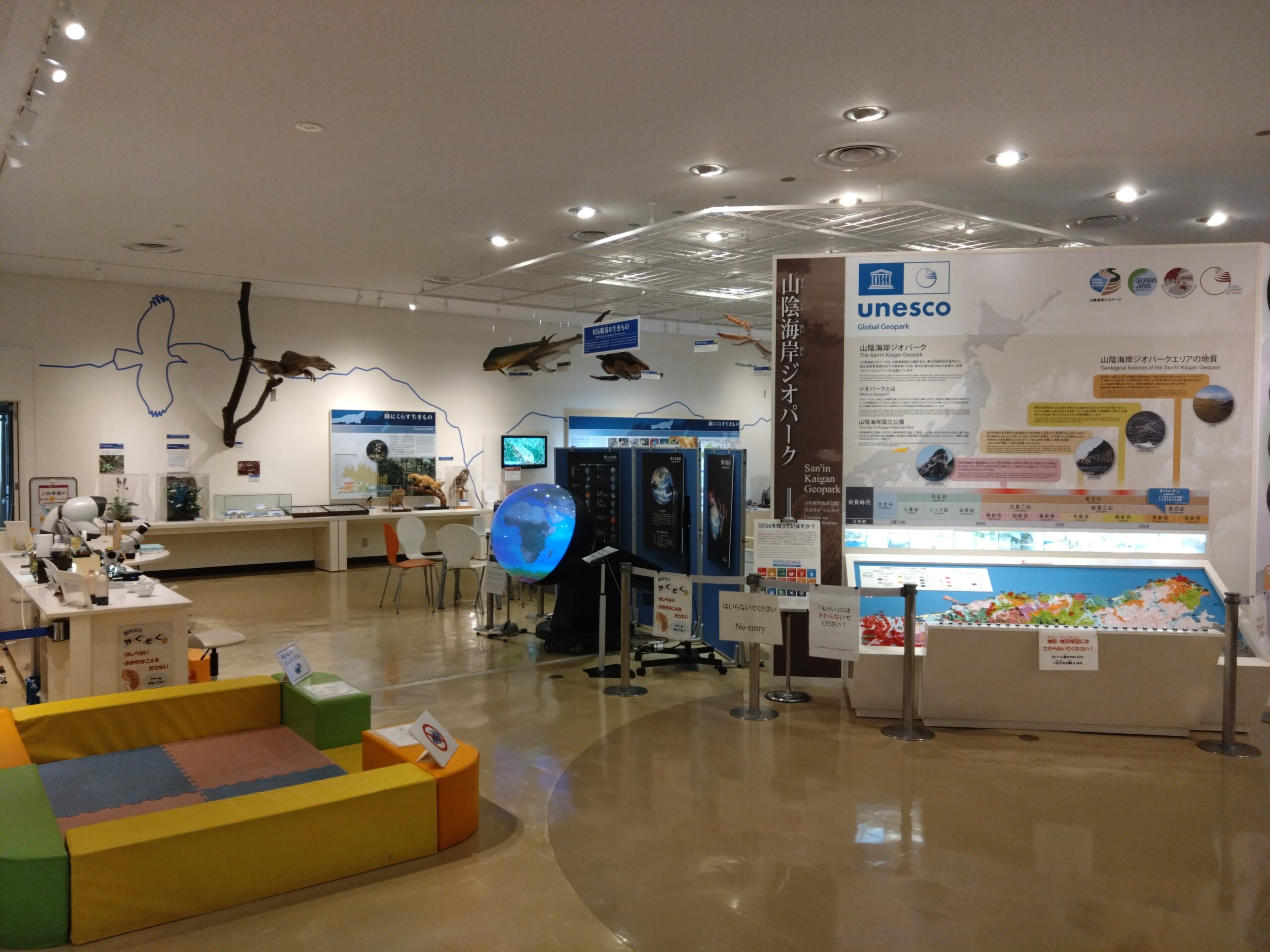 館内には、山陰海岸の地形や地質、生き物などについて紹介する展示が並んでおり、浦富海岸の成り立ちや自然の魅力を学ぶことができます。