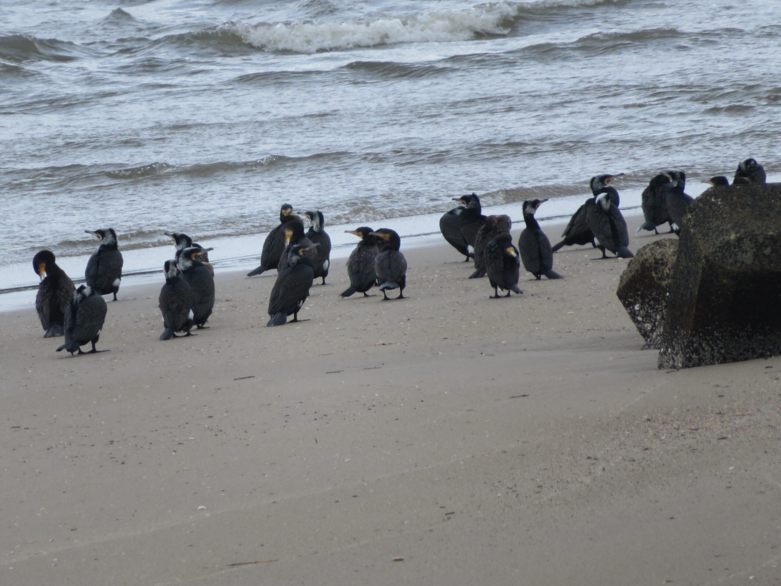 カワウは河川や河口域に生息しているので浜(砂丘の辺り)で目撃できて、ウミウは崖に生息しているので浦富海岸の島々の崖などで目撃できるっぽいです。