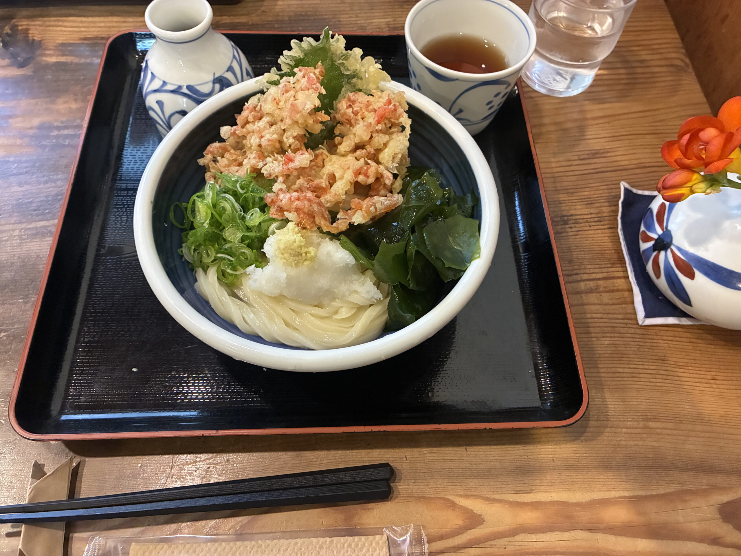 久松公園近くのうどん屋さんでサクラエビのかき揚げを乗せたうどんをペロリ。