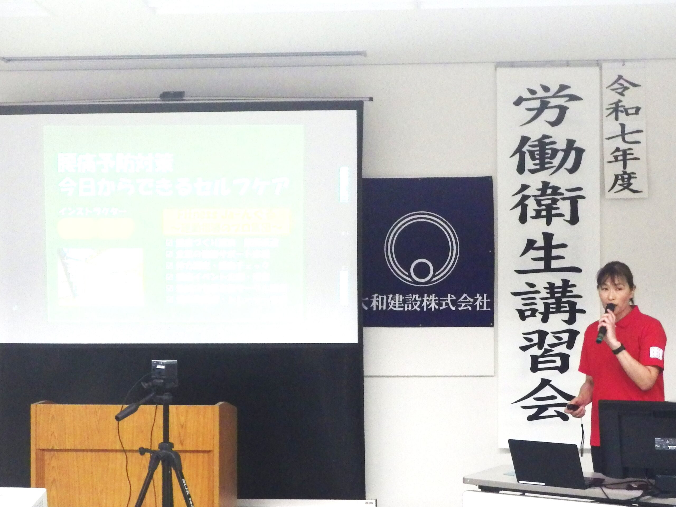 10月1日に令和7年度労働衛生講習会及び人権問題研修会が開催されました。 前半の労働衛生講習会は「腰痛予防対策~今日からできるセルフケア~」をテーマにFitness Ja-んぐるさんに講義していただきました。 実はFitness Ja-んぐるさんはここで講師をしていただいて今年で7度目となります。 実際に5種類の運動をみんなで実践して普段使わない筋肉を使ってひえ~~~~ってなったりもしましたが、姿勢や腰痛対策についての理解を深めました。 [caption id="attachment_4369" align="alignleft" width="2560"] 腰痛になりやすい度チェック![/caption] [caption id="attachment_4370" align="alignleft" width="2560"] 座ったままできるストレッチ[/caption] [caption id="attachment_4371" align="alignleft" width="2560"] みんなで立ち上がって筋トレチャレンジ![/caption] 休憩を挟んで人権問題研修会のテーマは認知症についてでした。 認知症の方とその家族の悩みや難しいところに焦点を当てた映像作品を見て、そのあと認知症の予防対策と地域社会でのサポートの取り組みについて学びました。